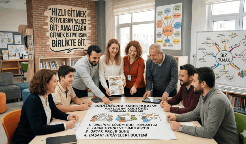 “Hızlı gitmek istiyorsan yalnız git; ama uzağa gitmek istiyorsan birlikte git.” İşte okulunuzda takım ruhunu ve paylaşım kültürünü bir kağıt üzerindeki slogandan, yaşayan bir kurum kültürüne dönüştürecek uygulama adımları.